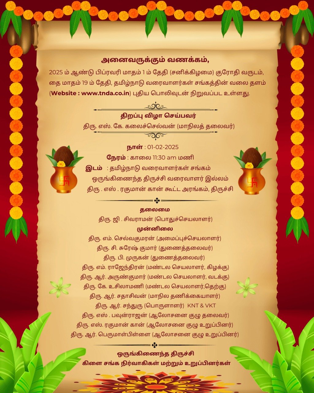 இந்த நிகழ்வு தமிழகத்தின் வரைவாளர்கள் அனைவரையும் ஒன்றிணைக்கும் ஒரு புதிய அத்தியாயத்தை தொடங்கும். இந்த இணையதளம் தொழில்முறை நிபுணர்களுக்கான மூலங்கள், புதுப்பிப்புகள் மற்றும் ஒத்துழைப்பிற்கான முக்கியத் தளமாக செயல்படும், சமூகத்திற்குள் தகவல் தொடர்பையும் அறிவுப் பகிர்வையும் மேம்படுத்தும். இந்த முக்கியமான நிகழ்வைக் கொண்டாட, அனைத்து உறுப்பினர்களையும் ஆதரவாளர்களையும் அன்புடன் வரவேற்கிறோம்