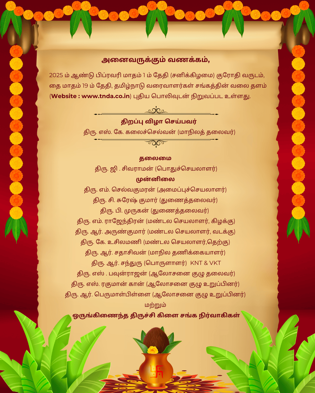 The event will open a new chapter in connecting and supporting Draughting officers across Tamil Nadu. This website will serve as a hub for resources, updates, and collaboration among professionals, enhancing communication and knowledge-sharing within the community. We invite all members and well-wishers to join us in celebrating this momentous occasion