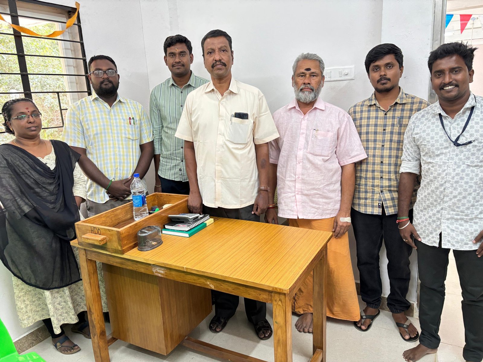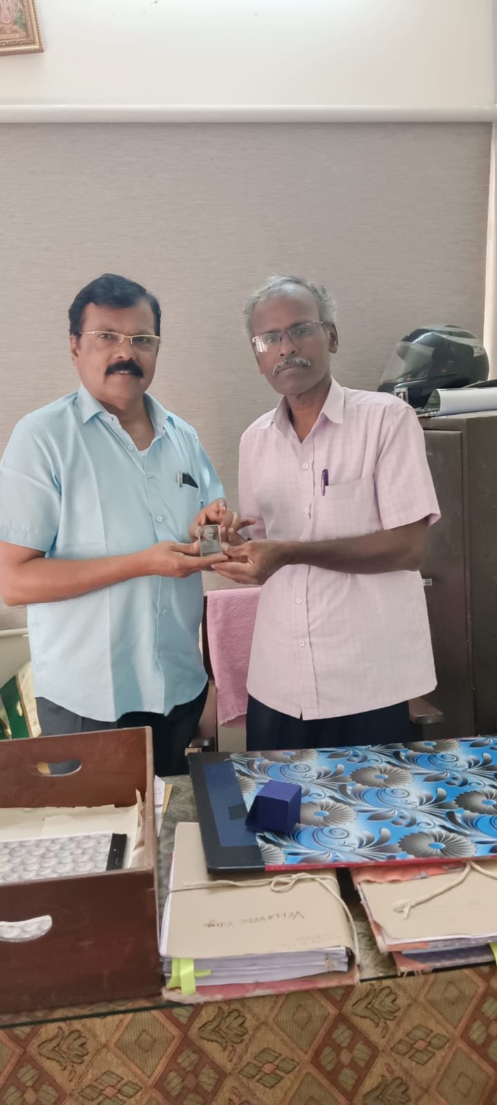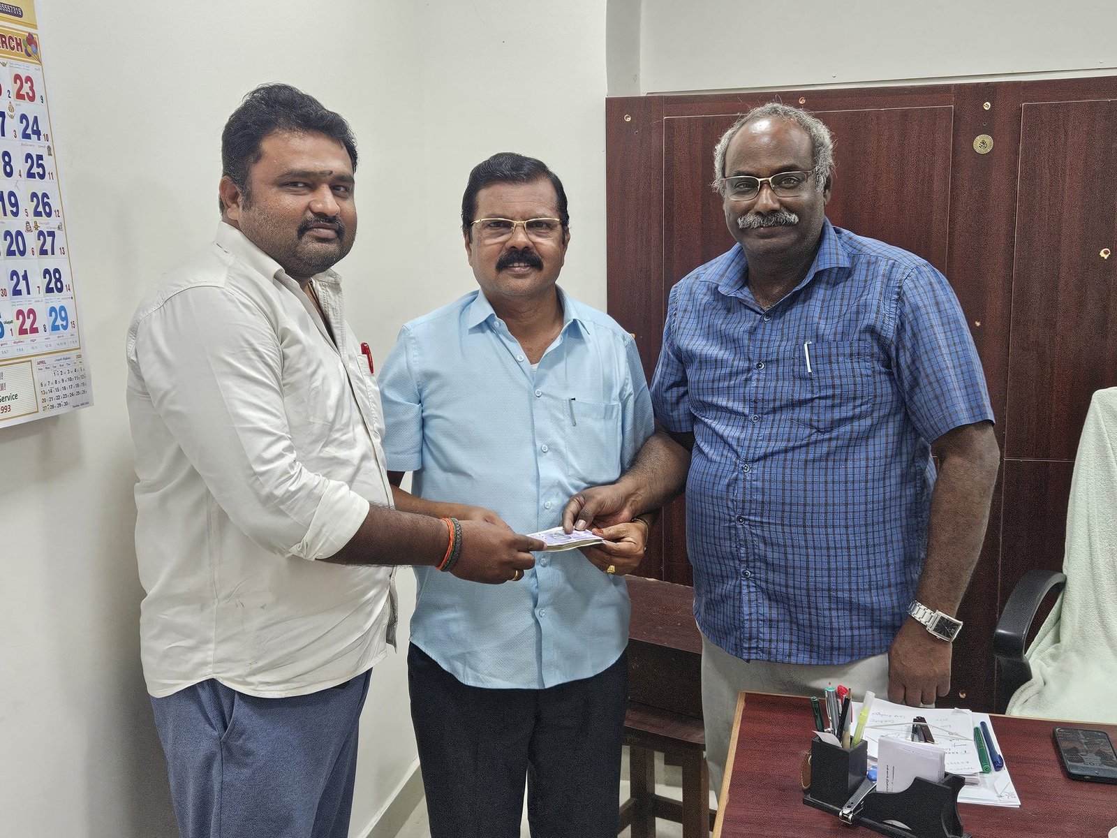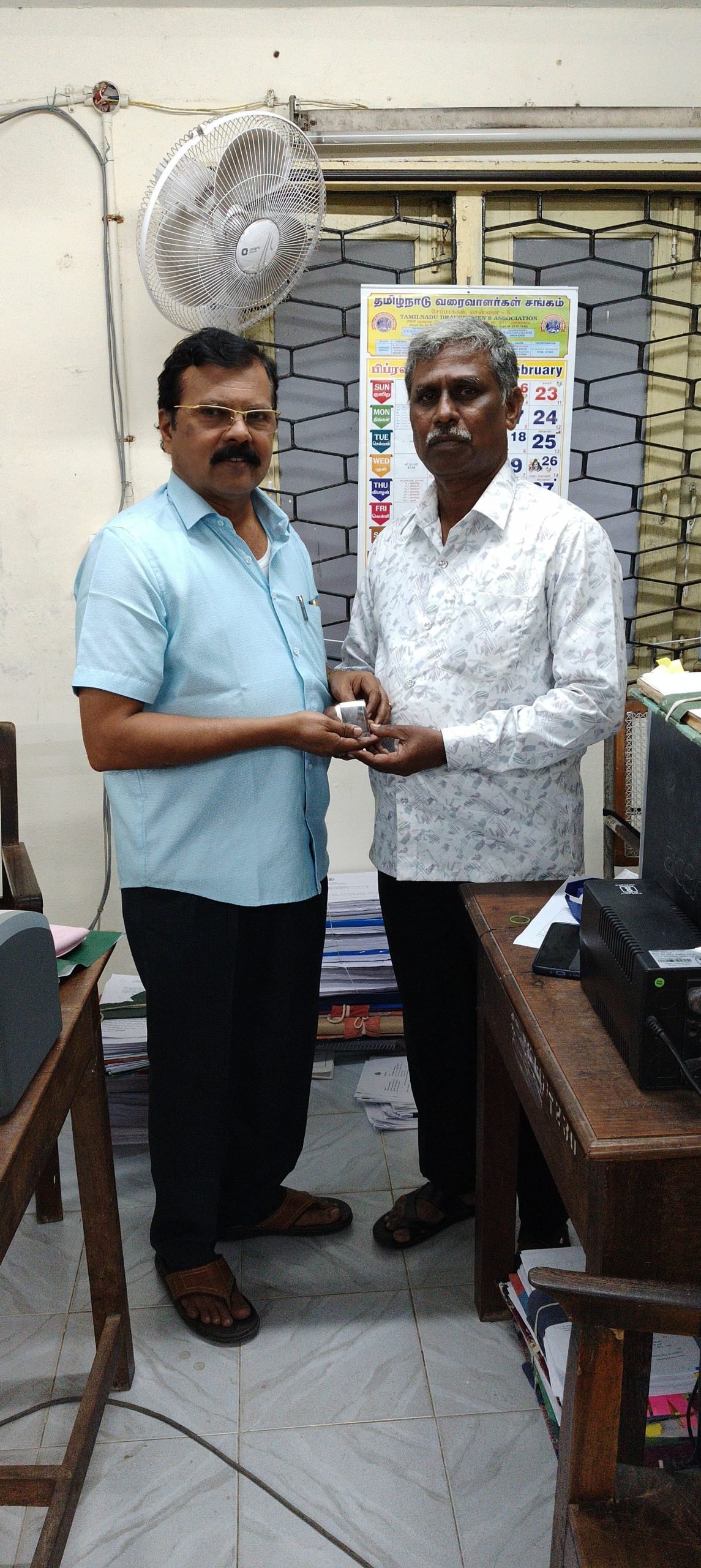 வரைவாளர் இல்லம் கட்டுவதற்கு முதல் தவணையாக ரூ.5000 வழங்கிய திரு.முருக நாதன் (ஓய்வு) முன்னாள் முதுநிலை வரைதொழில் அலுவலர், வழங்கிய பொழுது எடுக்கப்பட்ட புகைப்படம்