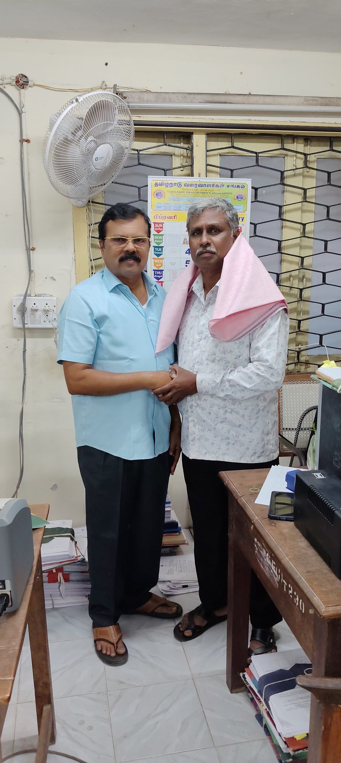 அவர்கள் தலைமை வரை தொழில் அலுவலராக கண்காணிப்பு பொறியாளர், பொபது., கட்டடம் (க&ப) வட்டம், திருவண்ணாமலை அலுவலகத்தில் பணியேற்றதற்கு தமிழ்நாடு வரைவாளர்கள் சங்கம்,