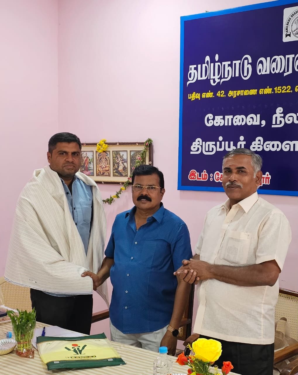தமிழ்நாடு வரைவாளர்கள் சங்கத்தின்மாநில பொருளாளர் திரு .பி .முத்துகச்சாலை அவர்களுக்கு மத்திய சங்க நிர்வாகிகள் கூட்ட த்தை முன்னிட்டு பொன்னாடை அணிவித்து நினைவு பரிசு வழங்கி கவுரவிக்க பட்டது